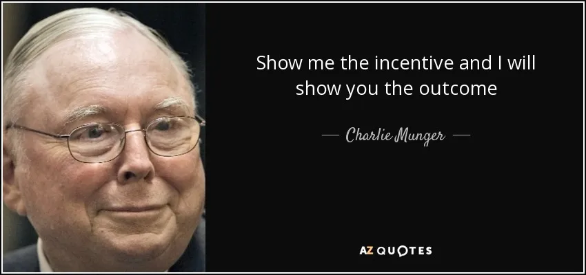 “Show me the incentive and I will show you the outcome.” — Charlie Munger, legendary investor, partner, and confidant to more widely known Warren Buffet.